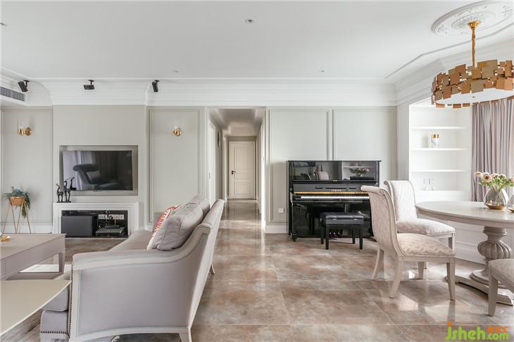 全房设计遵循暖灰调、浅色系、协调色的基调,硬装与家具依然归于简约美式,但地砖、灯具、饰品、装饰画等均撑起室内不同场景的亮点。我们希望这个家是安静的、时尚的,像奶茶一样香香的、暖暖的。
