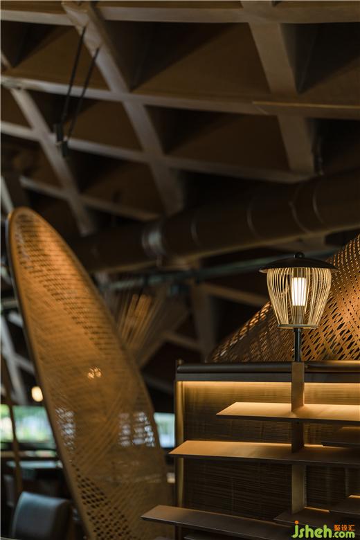 The fluid slanted roof from the original structure is kept and gave rise to the design idea of an idyllic life.The bamboo-woven tools for manual labour were the best assistants of the people in west Sichuan. We have reinterpreted them and created many related interior components, including awnings and screens, which became an extension of the spatial impression.