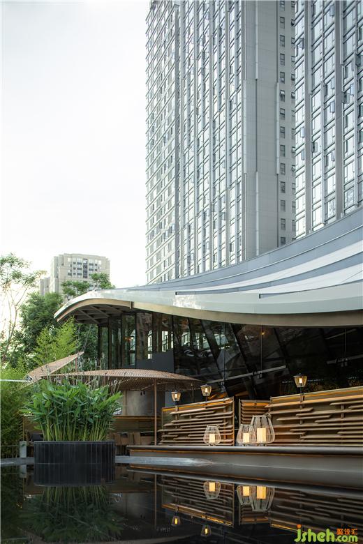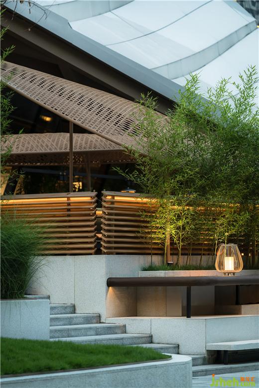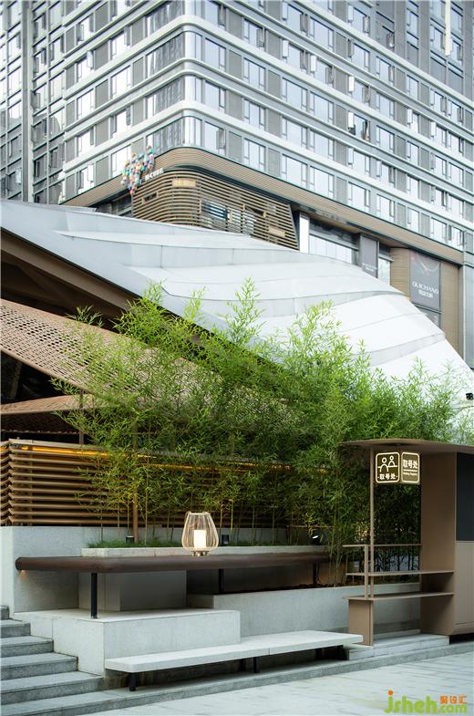 在将所有外景最大化借入的前提下,自由与围合式的布局形态填满建筑内部,用以满足商业指标的严格规则。火锅店设计重点的入口与外摆区域,以及和建筑的关系,强调了漫步、过渡、治园的情绪设计。