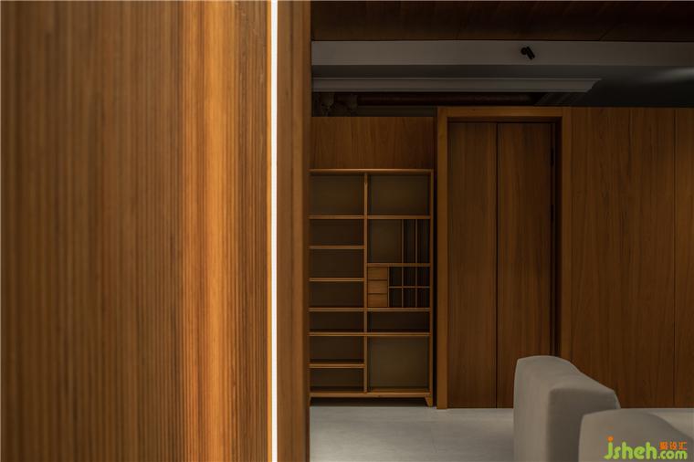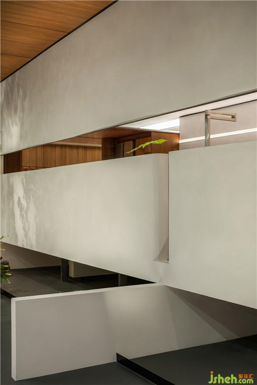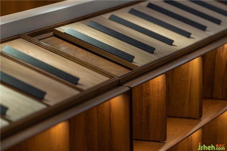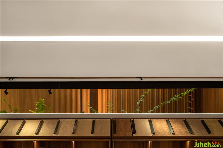 最引人瞩目的是在区域划分上,设计师让不同属性的空间交汇在顶部,而不是常规的地面抬升。展厅设计师在这里让灯光的区域突变,线条灵动而简约而优雅,工艺细腻。