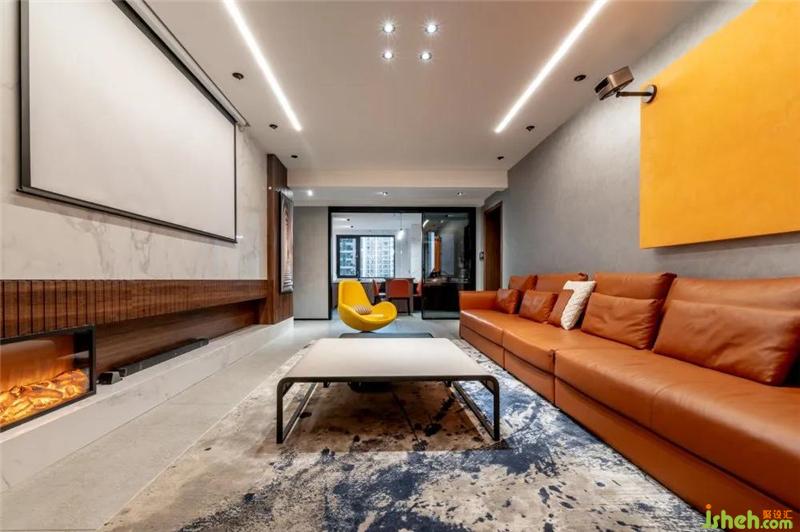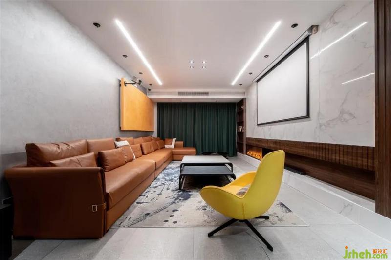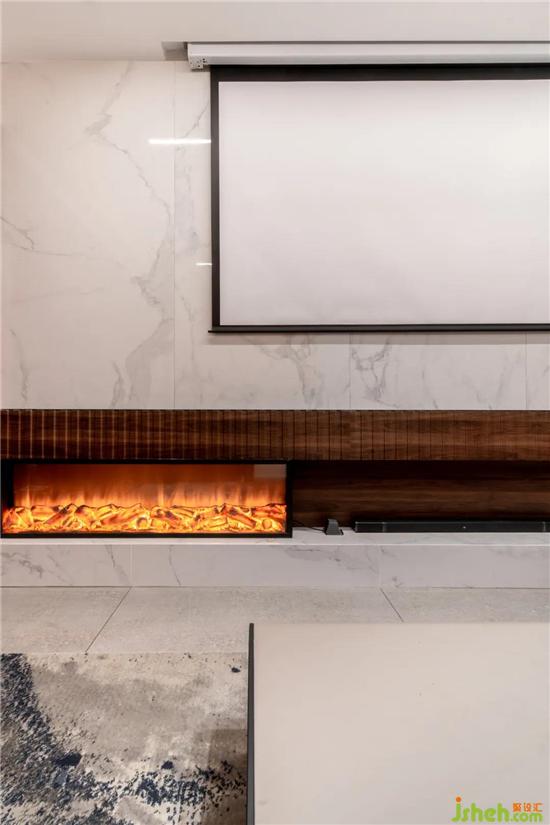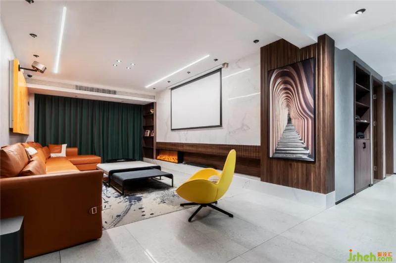 本案的服务模式为全案设计,设计者在体现现代极简风格以外,呈现更多的是围绕家庭成员的空间秩序与表达。家庭空间设计至始,都是一种不失品质的生活态度,而设计者所传达的,也是追求简单而安静的生活方式。空间色彩搭配,让室内元素更加融合,改变基调的单一性,打破常规,呈现更具质感家装。客厅由墙面质感的灰色,木作的胡桃色,布艺的墨绿色三色融合,看似简单的设计其实是空间相交的减法,简约的时尚。本案随处都透着现代智能科技感的设计,投影仪代替电视,扩大了视觉空间,人工智能家居享受舒适便捷的生活。内嵌的壁炉设计与深沉的木色相撞,有股温润的暖流流淌至家人的心中。原本餐厅面积较小,于是将餐厅与客厅相连,扩大空间视觉,采用餐厨一体的方式,让空间得到充分的利用,感受烟火气息,更有品尝美味的乐趣。设计者将自己对于生活的品质融入到作品中来。主卧室以墨绿色为主色调,搭配主题胡桃木色安稳宁静,黑白线条壁画,更让整个卧室空间整洁且不失雅致。卧室中没有过多的陈设,从灯饰到床具都极为简洁,但却又不失格调,也许家的定义便是如此,简单的美好。装修公司