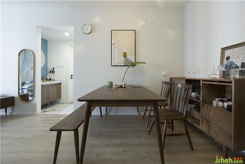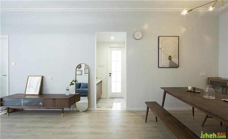空间的重构,合理的分配区域,让比同小区同户型的邻居拥有不同的空间体验感,客户是以为年轻时尚的80后,对接方案时摒弃了常规家庭的厨房、客餐厅独立的功能,而是把空间相互结合起来,没有把客厅作为整个家里的中心店,而是用中岛台将整个客餐厅连接在一起,使得客餐厅更加自由,空间也显得更为开阔,不论是光线还是空间、还是视觉感都很享受。餐厅旁边一排的餐边柜和书柜,不仅可以储物,更是有书柜增加仪式感,将大餐桌同时作为工作台使用。空余之时可以在这里码字发布自己的自媒体文章都是很好的享受。主卧里高挂起的CHANEL女神,配合羽毛灯,更是在蓝色背景墙下撑起了质感。阳台是空间的净土,回归自然,被风吹起的白色纱帘,空气里弥漫着柠檬树的味道,一勺冰西瓜、一杯咖啡撑起整个夏天的假日。