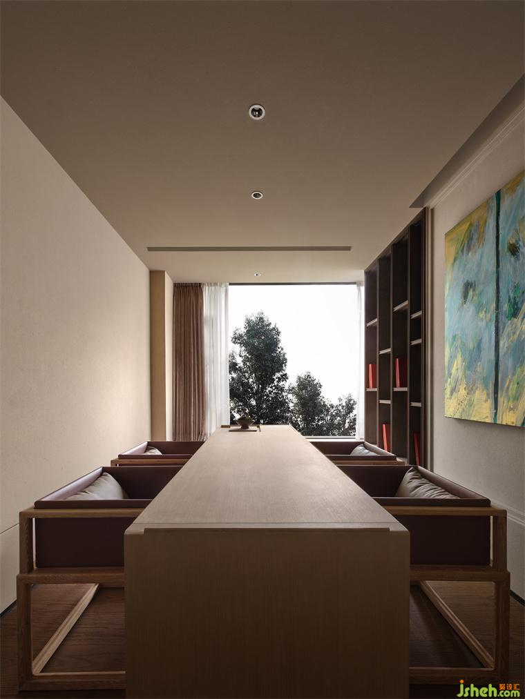 品茶间以舒为主,是对自然主义的敬畏,是时光流转时的经典永恒,会所设计平衡于生活;整洁美观的精神,尽还存在,还添上一些野趣。在“规律”与“秩序”中回归心灵的放松,拾起生活真意,让自己找到一种“归属感”。