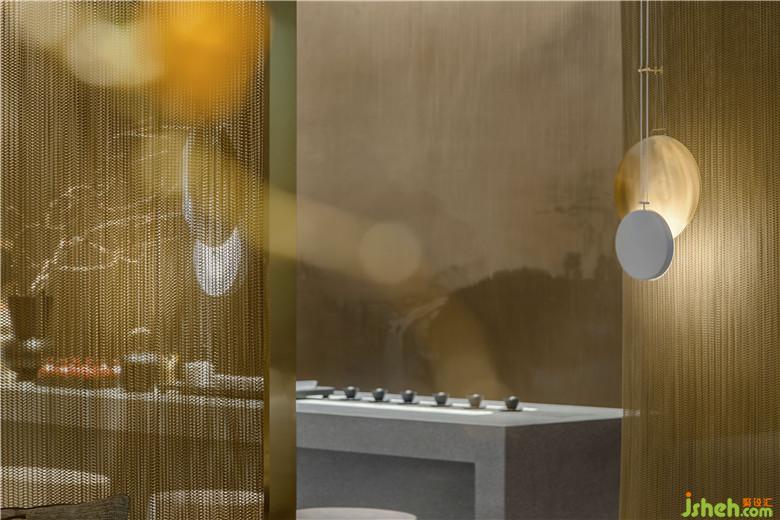 接待区与洽谈区以屏风进行分割,屏风采用金属布帘材质,形成隔而未界的效果,在视线上扩充了空间感,让本不宽阔的空间显得开阔通透。
