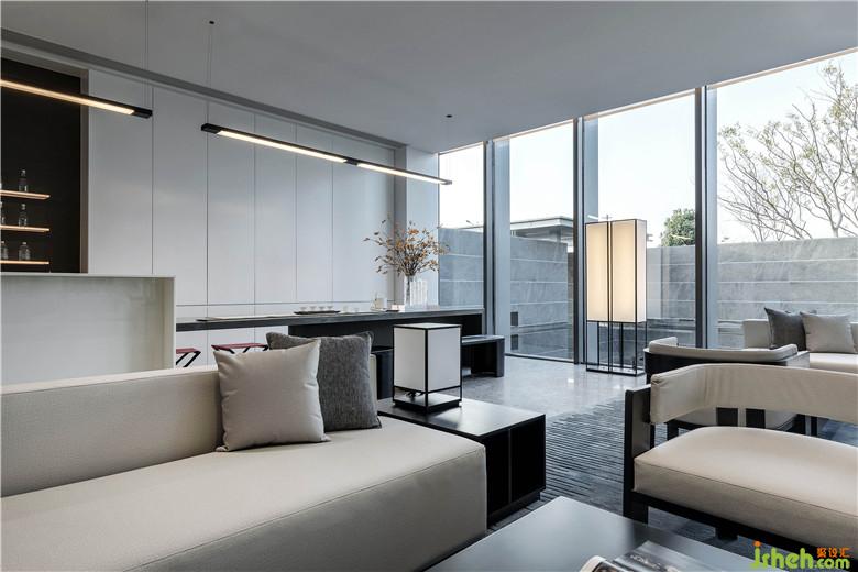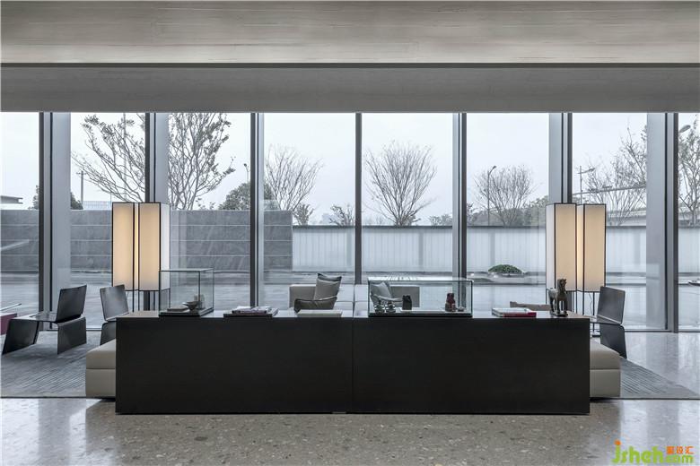 洽谈区采用大面积落地玻璃,庭院之景,为空间增色,春夏秋冬,变为一幅幅彩色画作,人立于室内,与自然产生连接,心境也因此越过藩篱,感受纯粹的安宁。