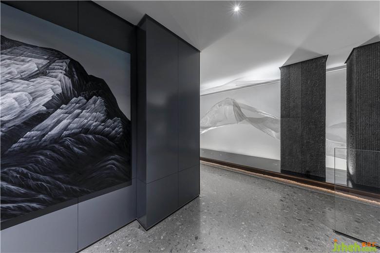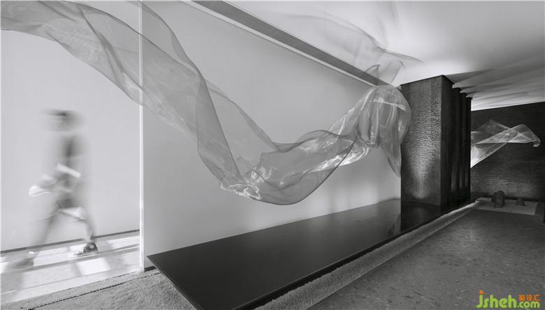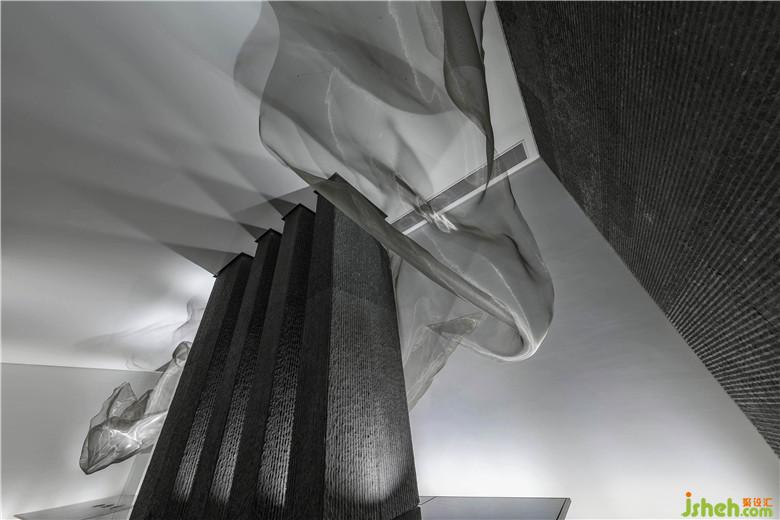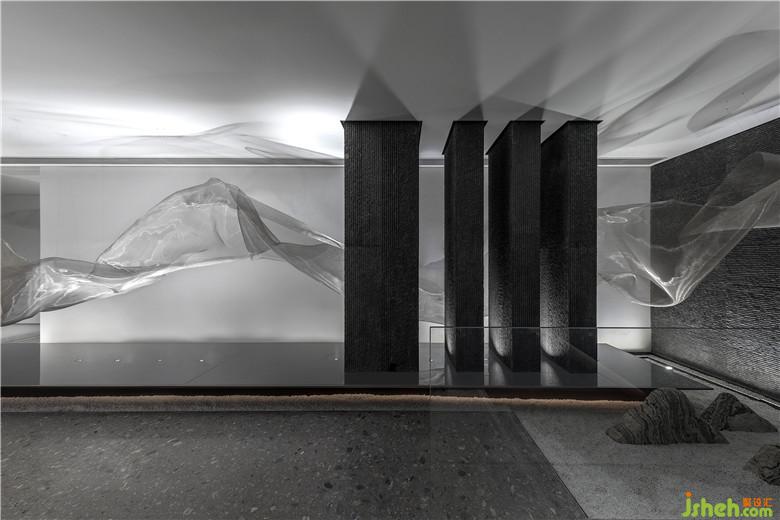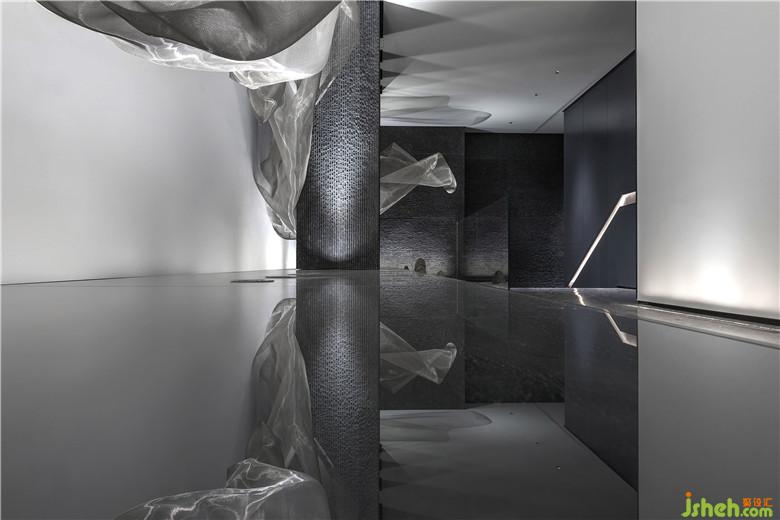 南京河流众多,盈盈流水哺育了当地的文明。故设计师将水漾记忆捕捉,水流蜿蜒之形化为艺术装置,流动于空间当中,以此形成韵律。这股溪流澄澈绵长,宛如淌过“桥梁”,淌过“山”,同时又颇具水汽氤氲弥漫之感,构建出生动的艺术意象。会所设计