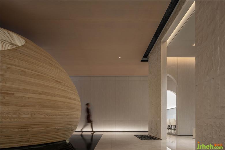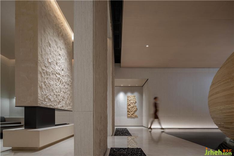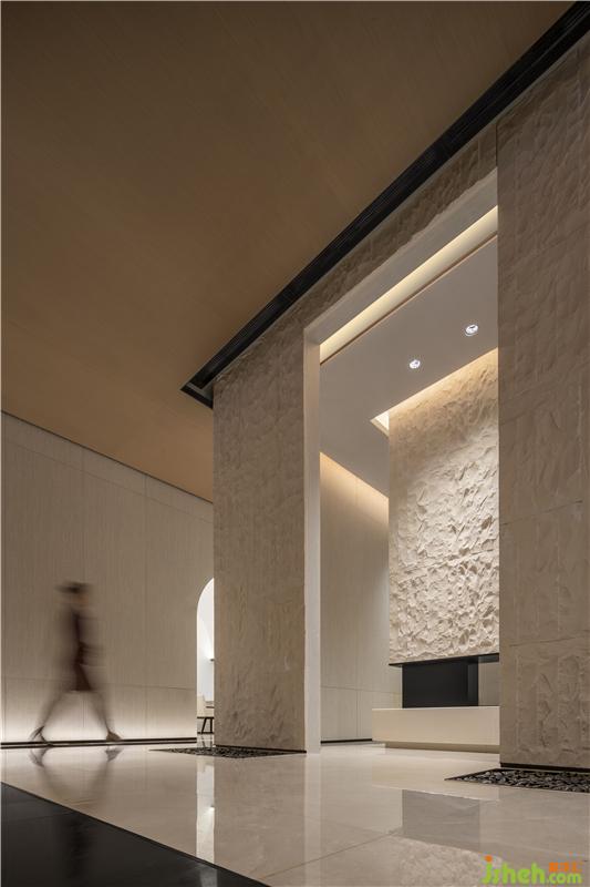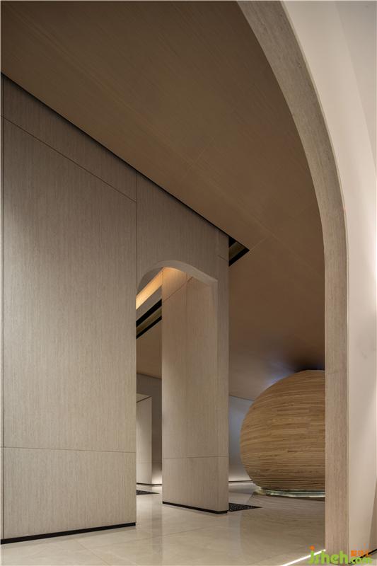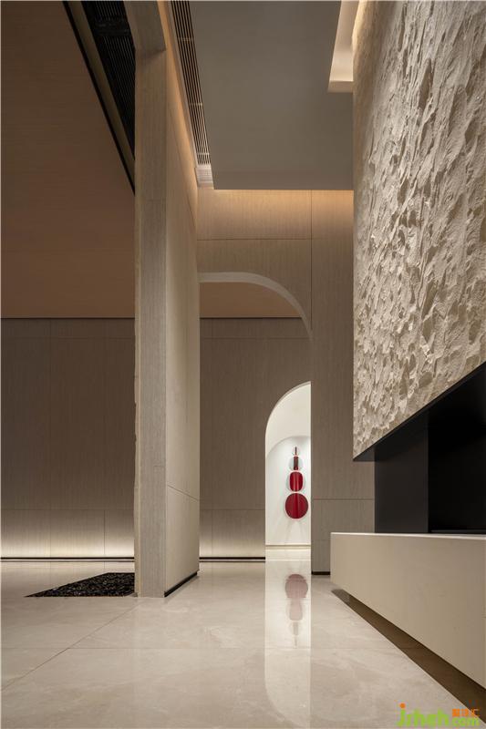 VIP洽谈区延续山石粗糙的纹理,同时以简洁的几何体块将空间进行简单的分割。明暗相间的光影效果,售楼处设计不同材质之间的对比,形体的分割,让空间演奏更生动的韵律,再多一些戏剧性。