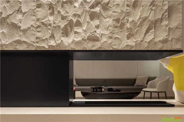 售楼处设计极简的壁炉设计,简约的家居线条,及精心摆摄的艺术品,增强空间的体验感。