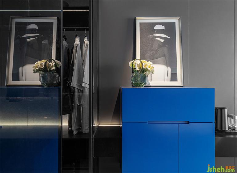 高级灰色系是空间的主调,再跳跃沉稳商务蓝,样板房设计让整个基调显得现代时尚又简约。软装在家具材料上用皮革及布艺,用金属增加层次感,不同材质的碰撞使整个空间檫出火花。从艺术画作到现代感屏风,美学的形与色,大大提升了空间的魅力。摩登,是一种高级又捉摸不透的气质。