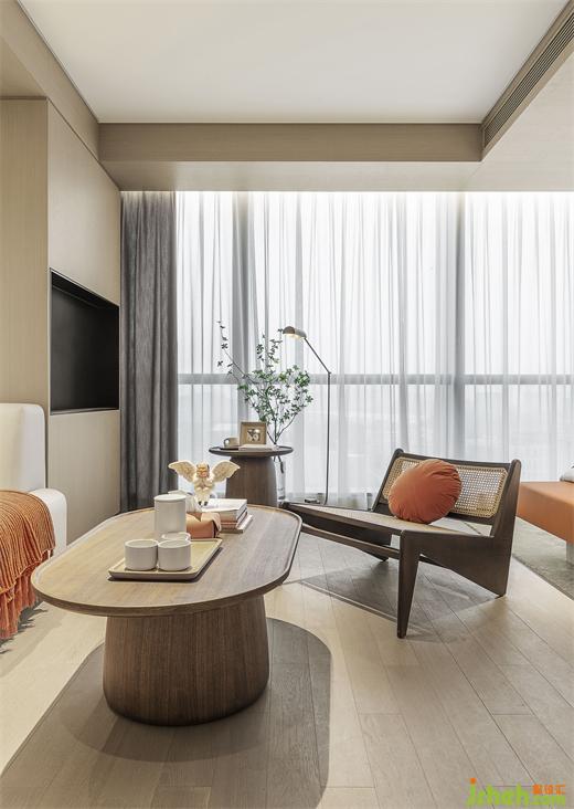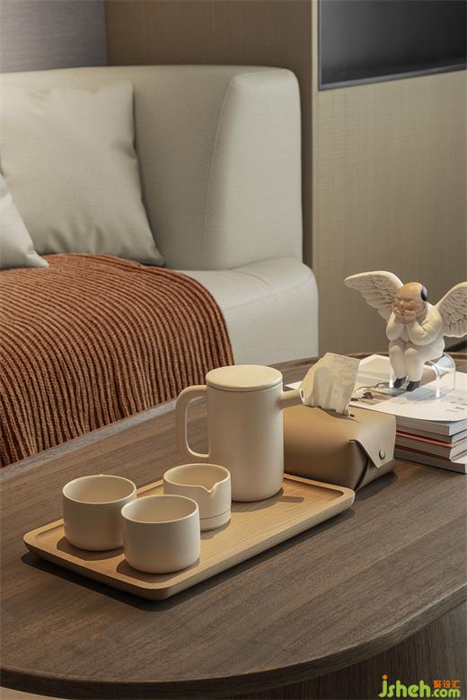 软装则采用编织、布艺等温润的材料,样板房设计让人在触感上感受到舒心。温和的木饰面与布艺的糅合,玻璃与哑光金属的衔接丰富材质的触感,温馨的灯光照映下,整体的软装搭配,结合亲肤的沙发布艺,空间底色是如此地温柔。