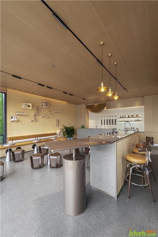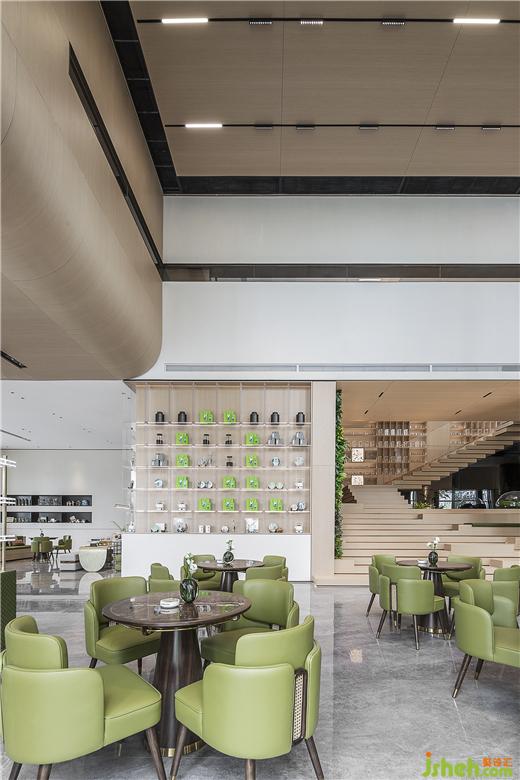 卓越昆明晴翠花园售楼处设计以木为墙,以书为里,以文创产品展示生活的创意,契合温润的灯光,鲜活的色彩,营造静谧安然的生活氛围。