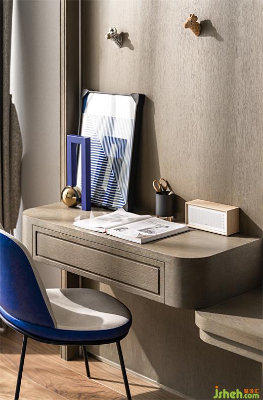 书房设计的手法打造一个富有艺术感和精致感的书房,书籍,各类型的艺术摆件实现了功能与美学的融合。