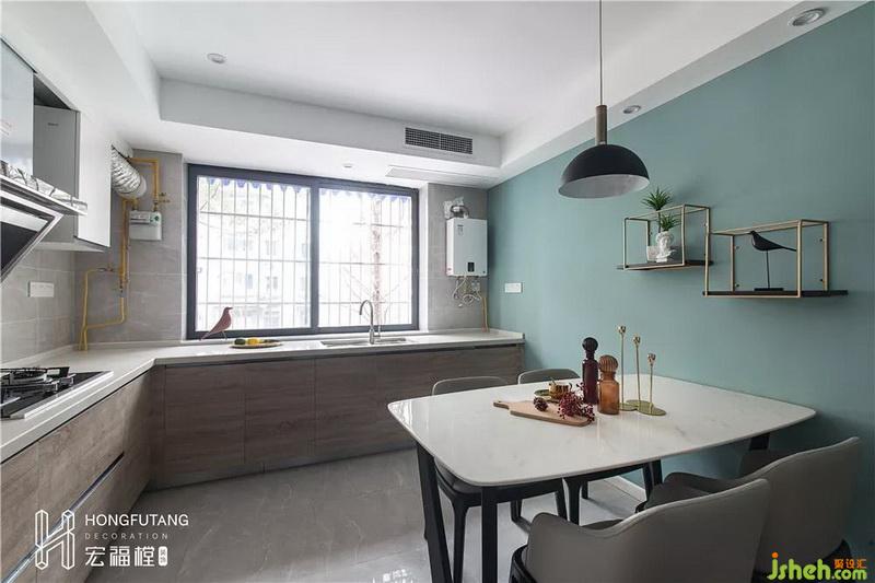 厨房靠窗设计,所以主要光源布局在餐厅位置。