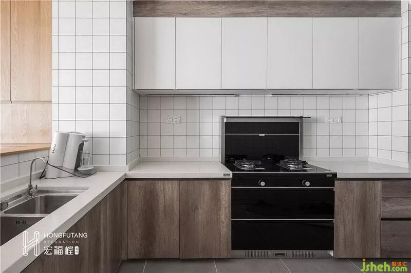 厨房作为开放式厨房,在前期考虑之初,需要注意所占用空间是否通气,为减少油烟影响,采用集成灶。