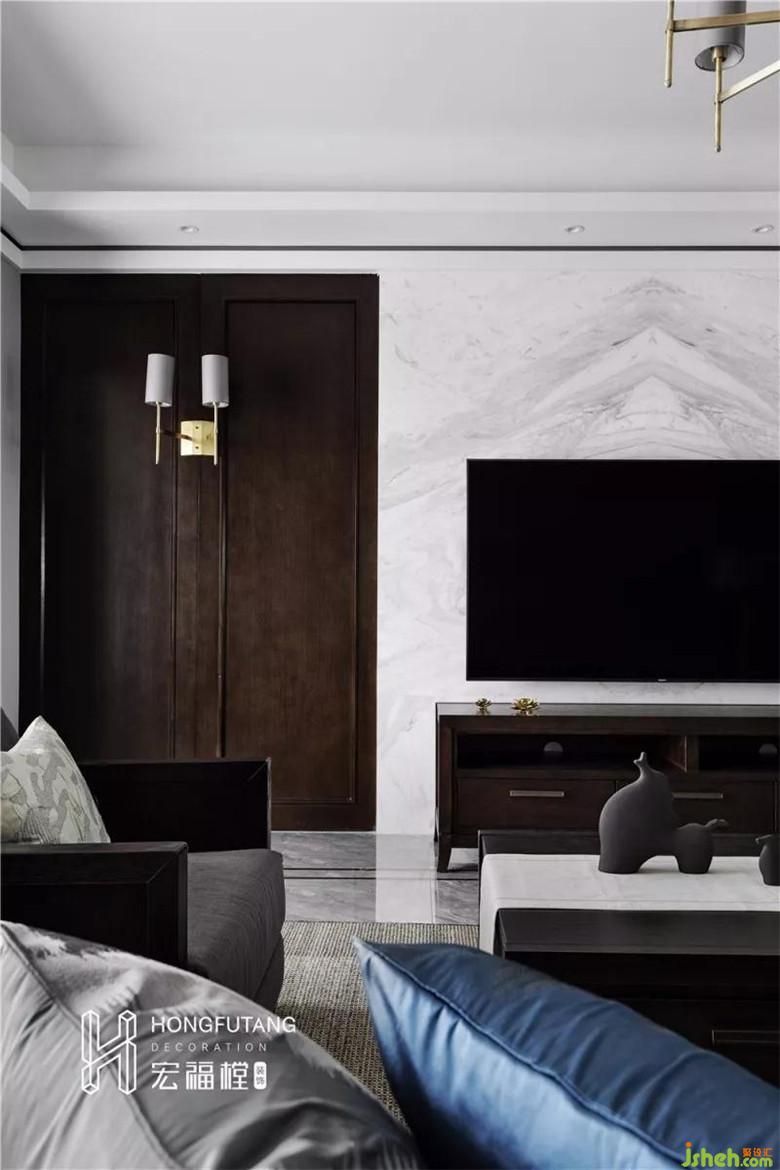 新中式客厅贵在删繁就简,放弃了对风格样式的表象追求,用简洁明快的线条,取代了传统的雕梁画栋,造型简洁,不事堆砌,色彩上也更加舒适柔和,给空间带来丰富的视觉效果。
