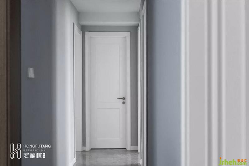 一眼望去客厅走廊,房间门框不加修饰的出现,体现空间线条简洁的形态。