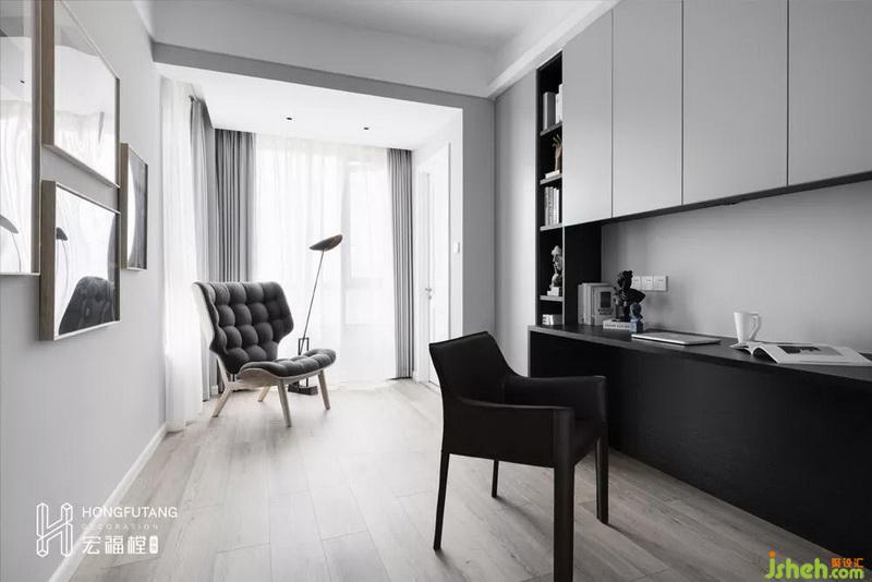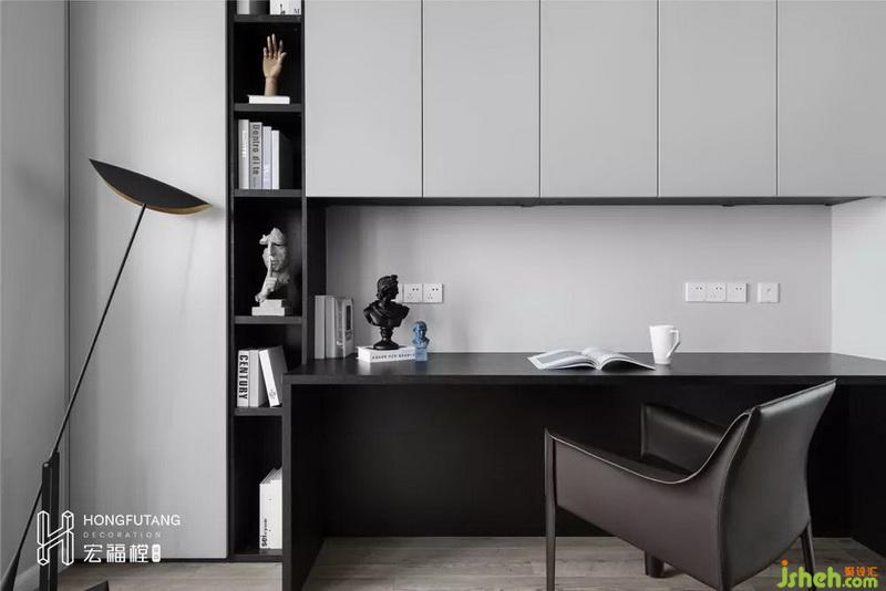 书房更显业主的职业特征,逻辑清晰,条理清楚。书柜的设计选用封闭式,将书籍资料整洁排列,隐藏于柜门之中,便于业主在解题时思路不会受外界环境的打扰。