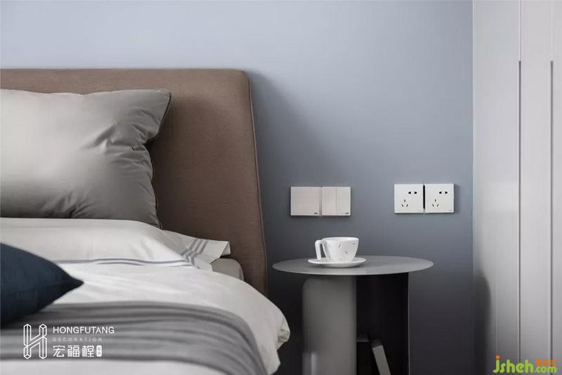 圆润的床头柜设计,柔和过于方正的空间,无需太多棱角,空间搭配上更加灵动。