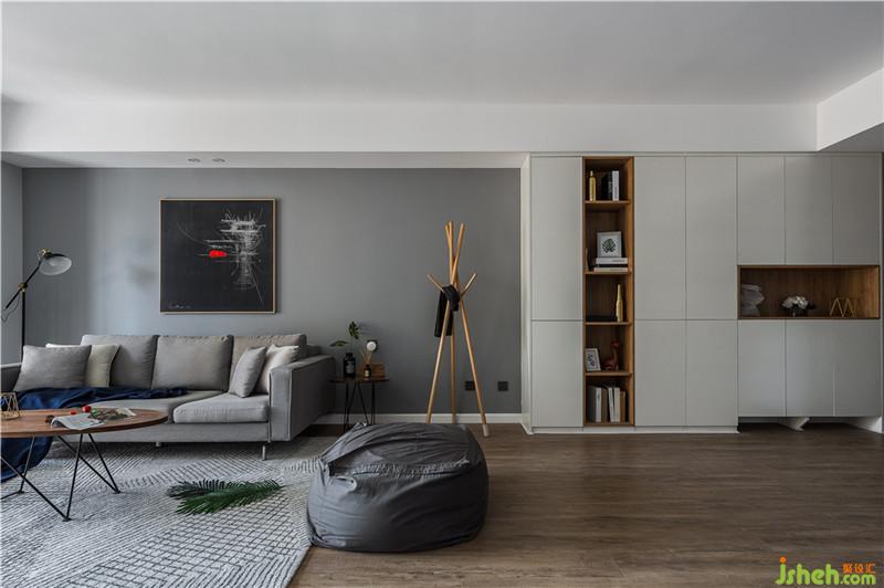 本案以浅灰色系为主,不同明度的灰色系列加以运用,给空间无限遐想,给人心神宁静之美,便于人在空间里面的独立思考。设计舍去繁杂的造型装饰,在原本功能构建上面考虑设计,尽可能塑造功能美学。现代简洁的白色木质柜子,配以自然温馨的木质门板,稍显粗矿的电视台板餐桌台面茶几及边几,都是朴素、自然、亲近的美好。自然材质和现代艺术的组合,给整个空间形成了巧妙的和谐,加以铁艺元素的点赞,给整个空间带来趣味感。室内设计师