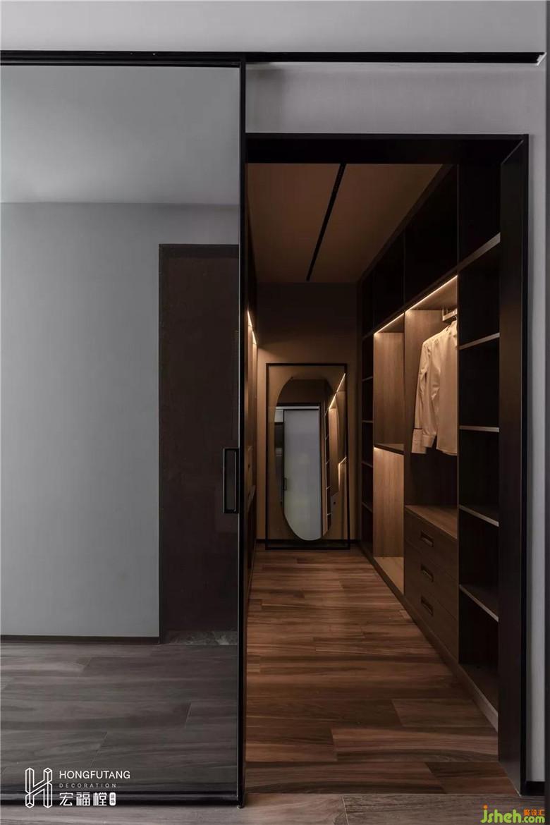 对于衣帽间的渴望,我想是每一位女性的期待。改造后的独立衣帽间,能够满足业主容纳满满的包包、饰品、服饰。通顶的极窄镜面玻璃吊滑门,即不占据衣帽间的使用空间,并且通过镜面反射,拉伸空间视觉层次。一场场时尚大片既视感从里迸发。