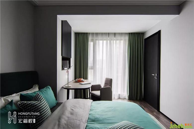 若是单纯选用主色和填充色对于儿童房而言,未免过于沉重。在此,不同明度纯度的绿色系:鸟蛋绿融入窗帘,优雅的空间,有了清新的活力,阳光照进银白色底色的儿童房,有了自然呼吸的味道,陪伴孩子的成长。