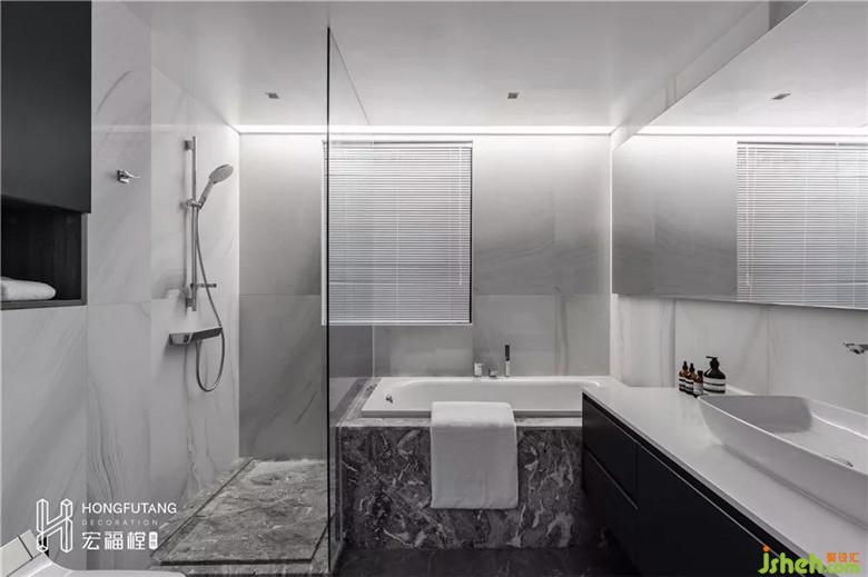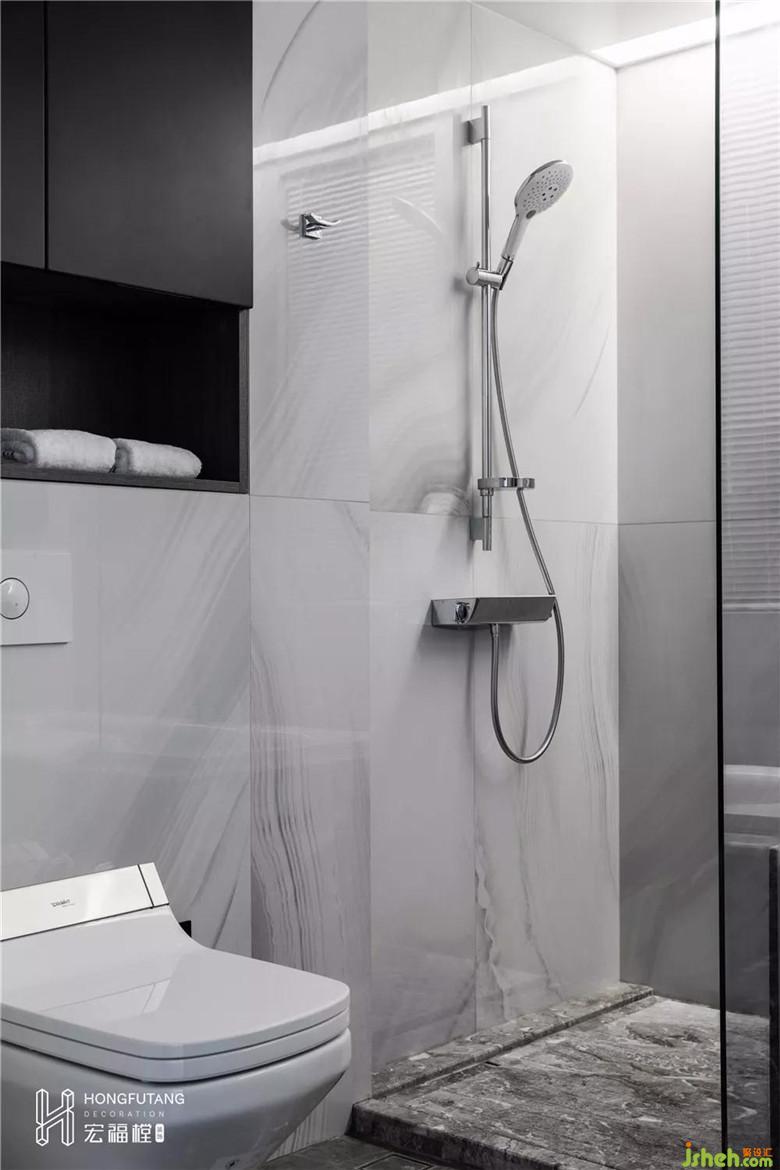 次卫在满足所有使用需求的同时,也巧妙的运用了线条流动感所传达的舒适性和放空性。从地板到墙面,不规则的线条传达着一种寻求质感的高品质生活理念,即使是卫生间也不能错失任何细节提升的机会。