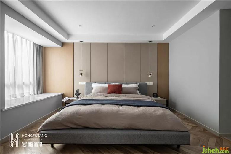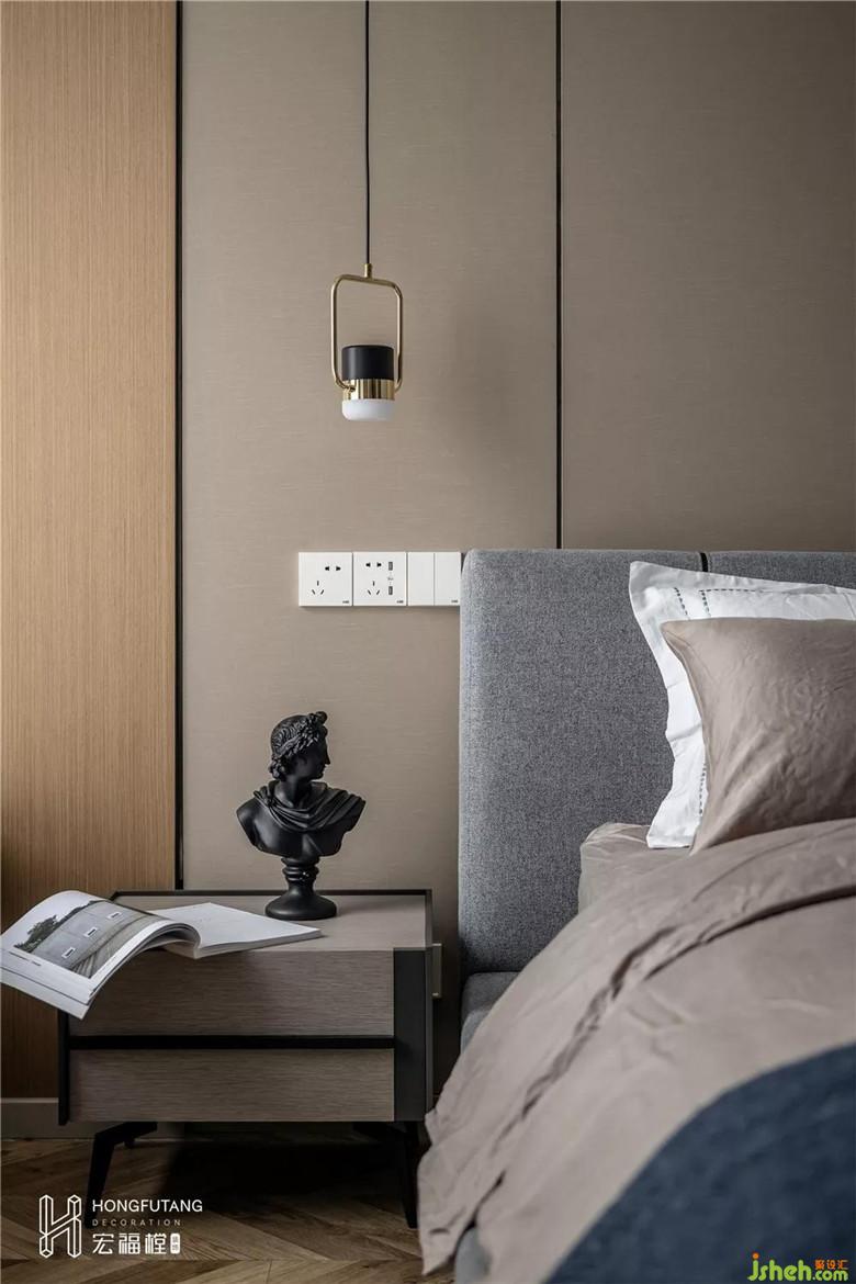 装修公司选用床头吊灯搭配点位灯,满足日常使用灯光,无主灯设计使得空间更加纯粹干净。