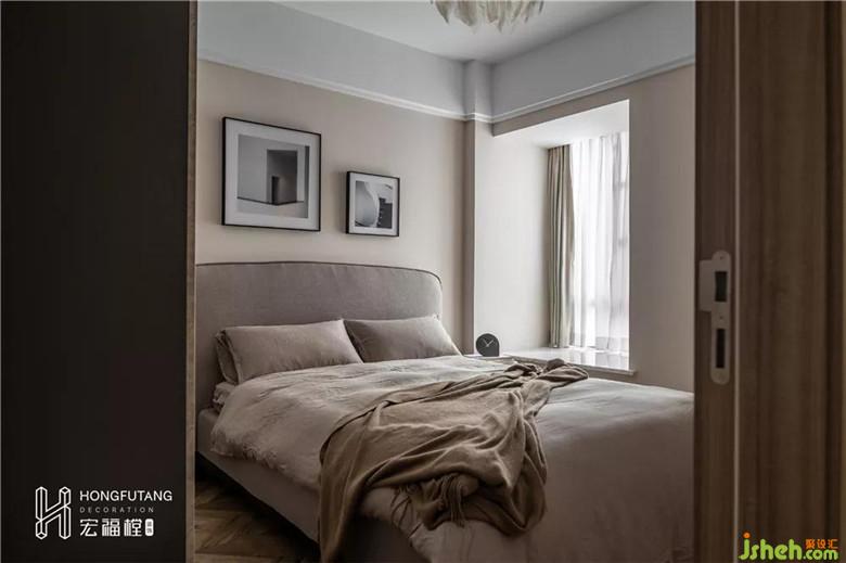 次卧延续主卧空间风格,米白色系搭配不易出错的同时,平衡了整个空间风格的温润感,缓解灰色带来的冷清、硬朗。