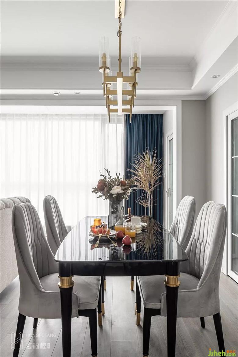 黑色石材餐桌与金属灯饰的巧妙搭配,为餐厅注入了更多的优雅与经典。家人每天齐聚在餐桌前,是在快节奏生活中沟通感情的最佳场景。