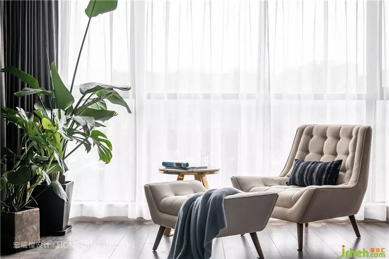 客厅一侧的躺椅,优雅别致,比利时进口亚麻面料,不仅有着较好的韧性,而且色彩自然,让整个空间高级感倍增。