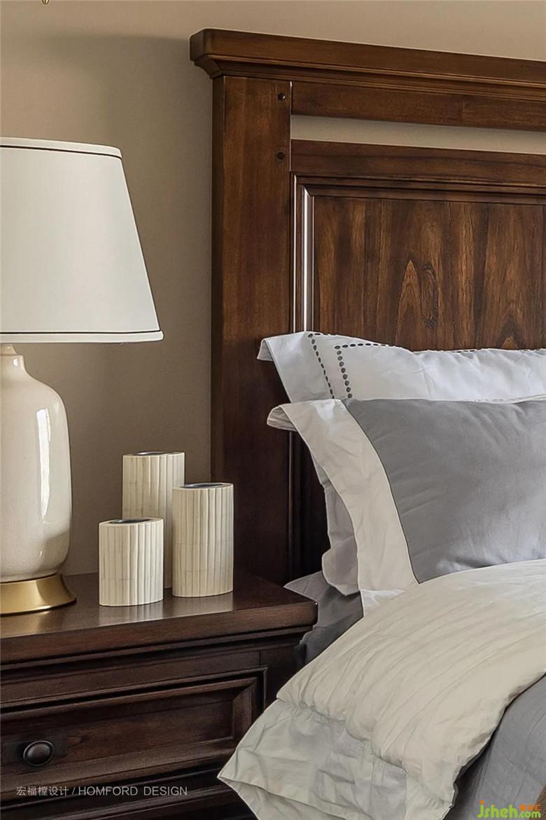 次卧沿用美式经典奶茶系配色,突出舒适、温和的空间氛围。
