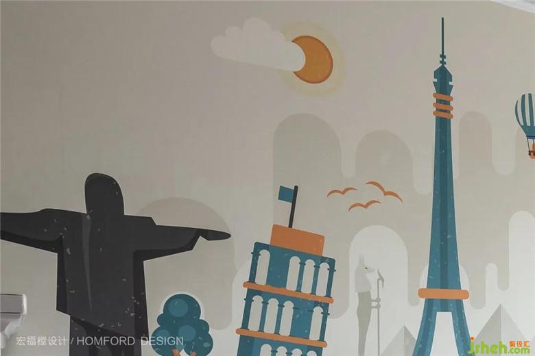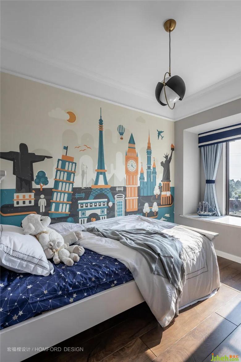 儿童房用色相对活泼,低饱和度的卡通地图墙纸,增添几分童趣却又能和各空间色系达成风格统一。