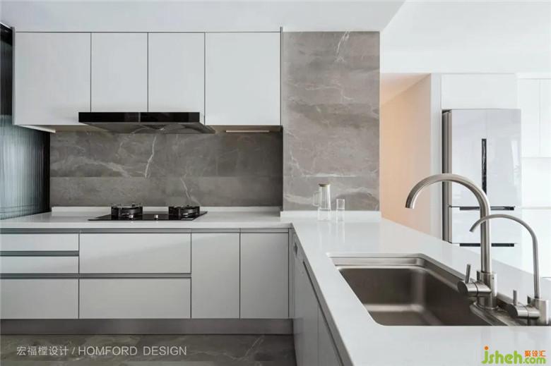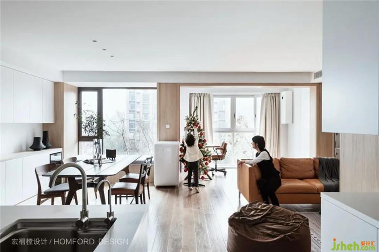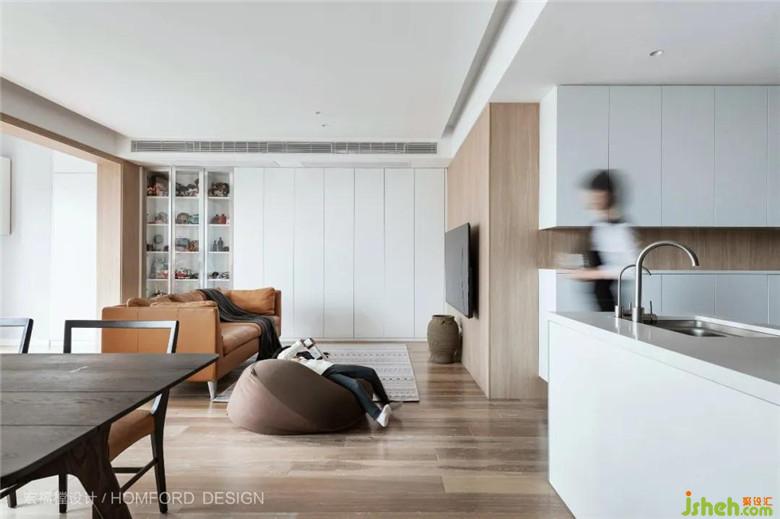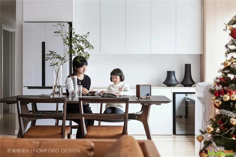 通透的空间布局使厨房与客餐厅连为一体,一家三口在这里享受美食让一日三餐也变得越发可口。