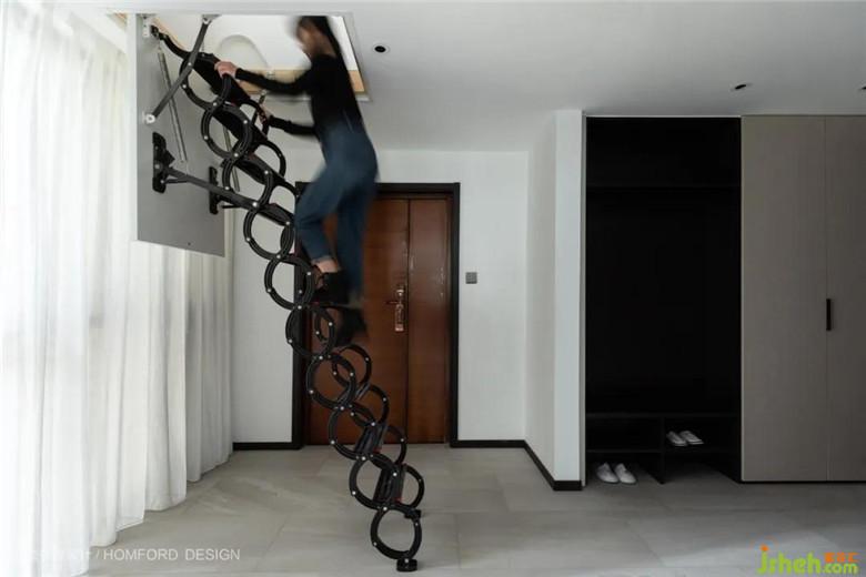讨巧的在入户的地方搭建了一处阁楼储物间,仿佛为这间居所增添了一种隐藏的魔力。