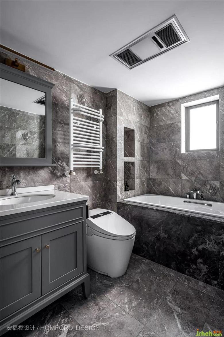 深灰与意大利浅灰大理石瓷砖的铺贴缔造了家里最后一个私人空间的完美性。幸福是早晨被阳光唤醒起床刷牙的时候,也是当身体沉入温暖的水浴中被带走一身疲惫的时候。