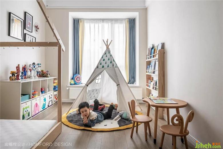 乐乐&小雯夫妻非常重视孩子的成长教育,认为孩子的性格培养、生活习惯与居住环境密不可分。于是我们根据小朋友的生活习惯将房间分为三个区域:游戏区、阅读区、睡眠区。