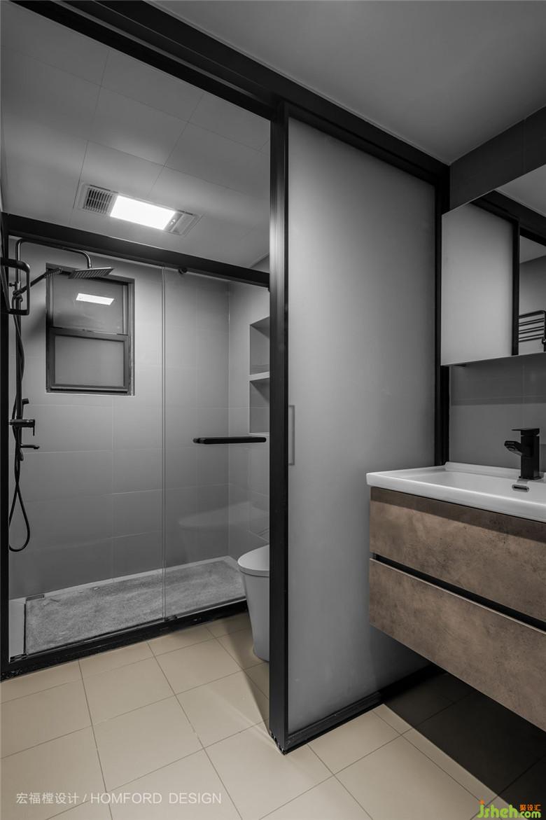 原卫生间面积局促,我们选择无地轨玻璃门隔断替代常规隔墙。洗漱、如厕、沐浴功能在这4㎡的空间同时进行也不显拥挤。小小的空间集空间美学、生活美学于一体。