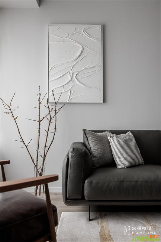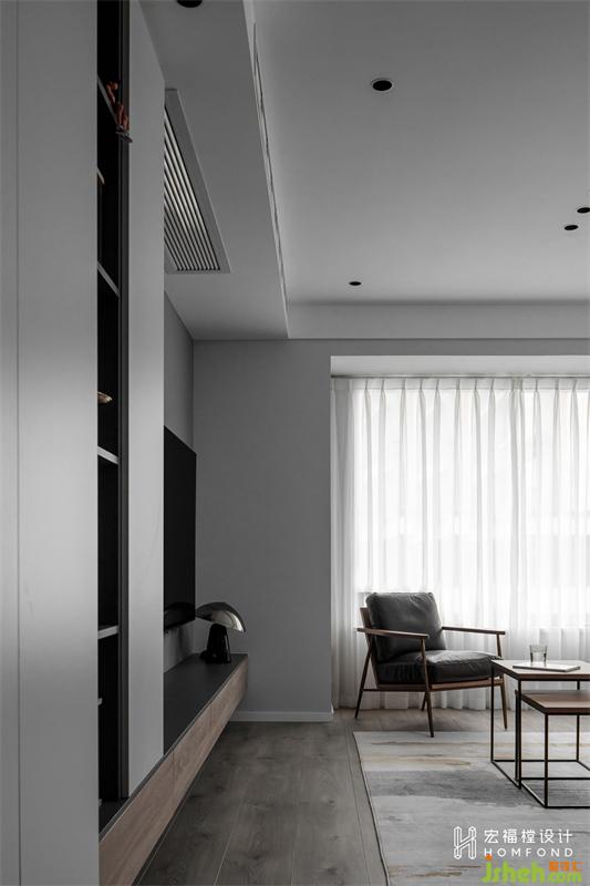 相信静止这样细腻的特质在繁杂喧嚣的世界里很重要,所以我们大量将空间留白,黑灰作为空间辅助色,营造极简的空间气氛。木质地板则用于递减黑白灰带来的冷峻感。考虑到屋主平日生活里的随意个性,所以我们将人、空间、物品三者之间进行平衡,家具、软装陈列简化,仅留存日常必需品,最大化升级空间给予他们的自由舒适度。