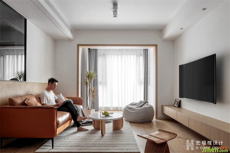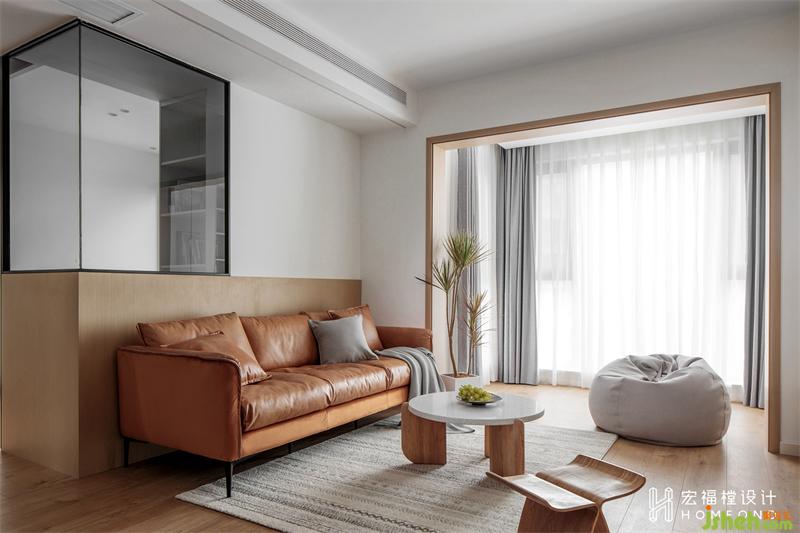 朝北的空间光线会受到影响,所以阳台纳入客厅一并使用,并将紧邻的隔墙与房门进行拆除,打破局限的原始空间感,设计为简洁有力的玻璃立面,让更多的光线照射进来。