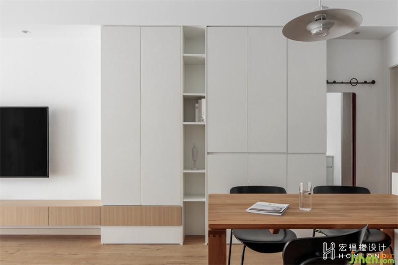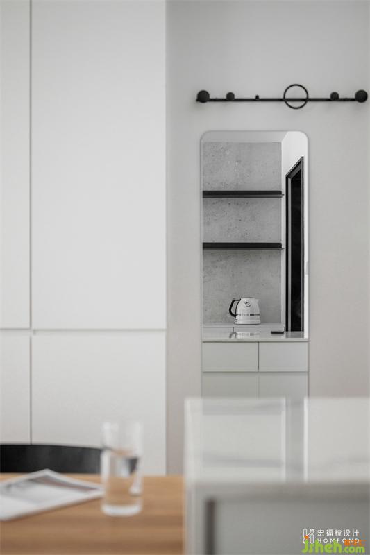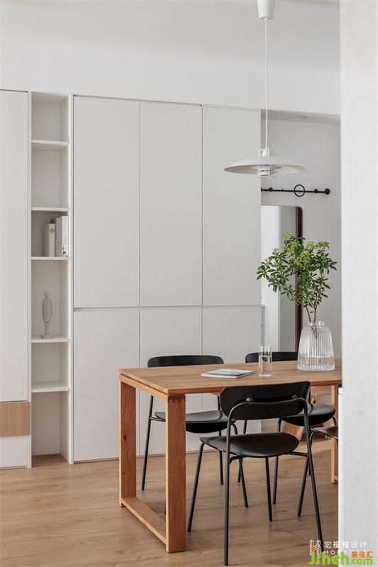 墙面则整体大面积留白去提高空间的明度感,并搭配富有质感的原木材质,在表达干净,清爽的同时不缺乏温润的氛围感。