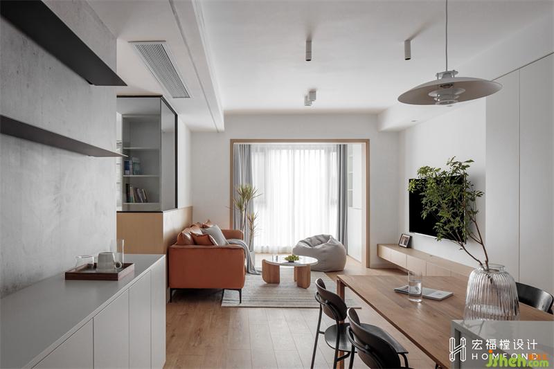 起居室与外部空间的氛围达成一致,内外皆是温润的天然木材与现代融合的洗练感觉。家居装修没有多余繁杂的修饰,将最简单纯粹的精神呈现出来,简洁舒适,让人内心平和。