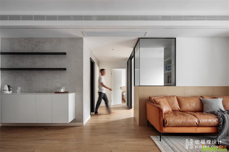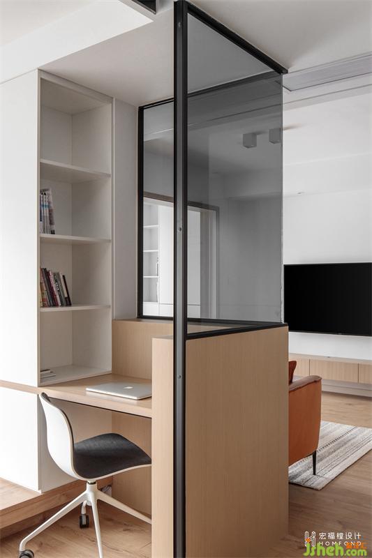 为了保持整体空间的视觉通透感,我们拆除书房部分墙体,改造为玻璃材质进行日常使用。以不同视角的打开形式,让空间充满自由和互动的乐趣。