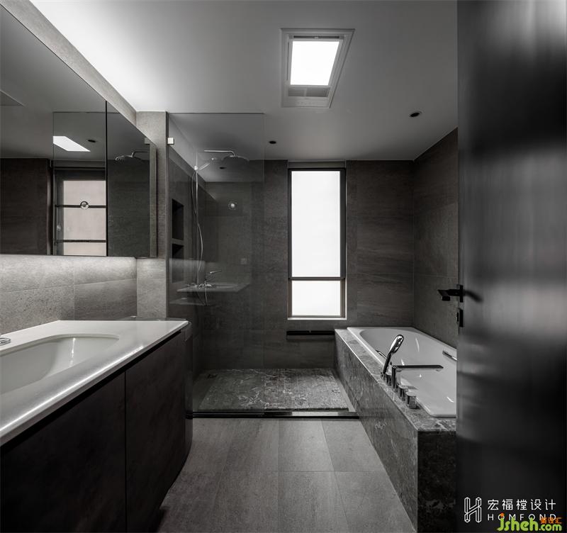 多重灰调作用到卫生间中,再用玻璃通透的特性,将空间进行视觉拉伸,极具质感且层次十足。自由中富有格调的氛围,能给屋主带来无尽的放松与享受。