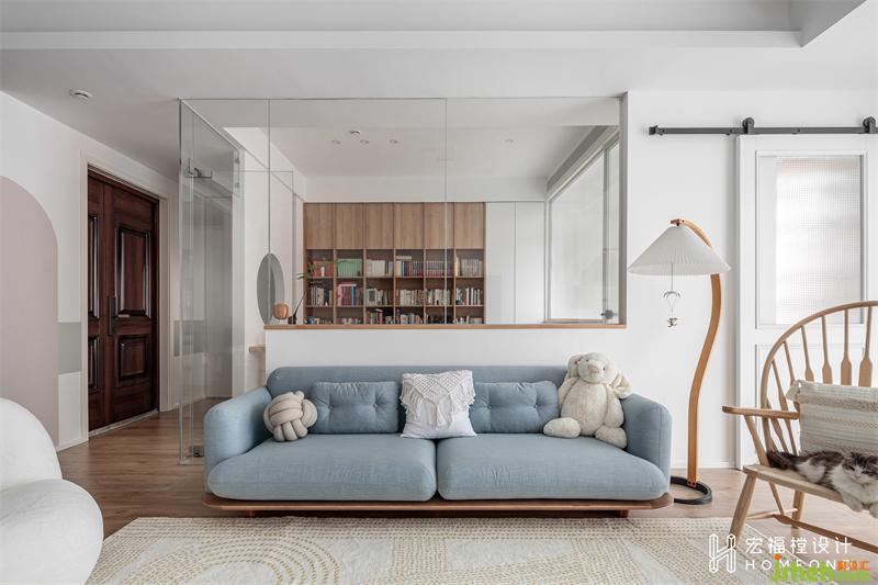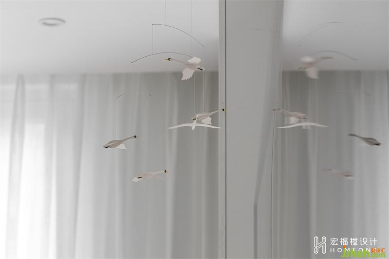 客厅空间是集体活动区域,所以尽量减少不必要的家具堆砌,留出充裕的空间休憩和活动。简洁的布艺、可爱的小物件,家庭成员被温柔的气息包裹着。