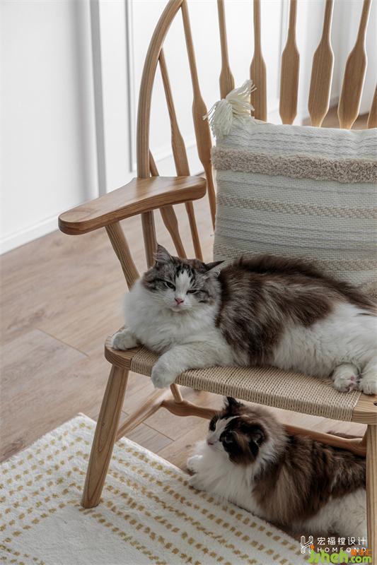 九只猫咪是老天爷赐给夫妻二人的珍贵礼物,除了考虑彼此的感受,同时也注重着它们的居住体验感。闲时会非常有耐心地对空间进行清扫,确保日常的干净和舒适。