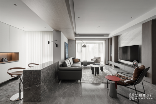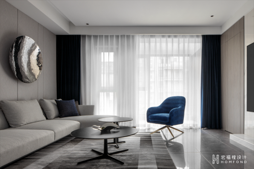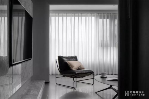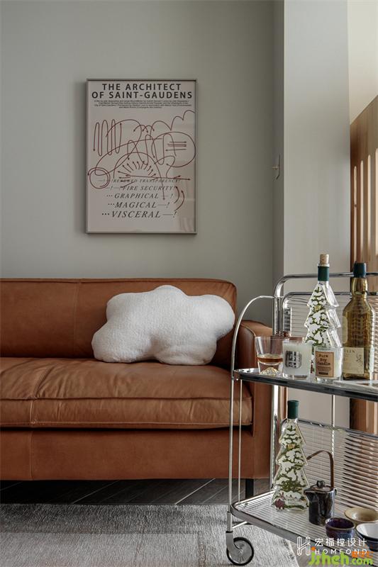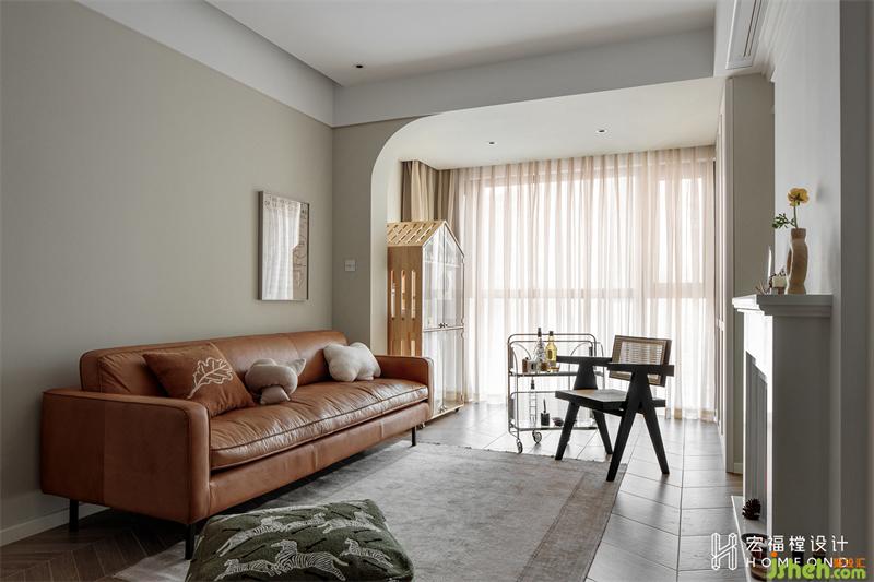 充沛的阳光透过奶油色系纱帘后得到了一层柔美的过滤,舒缓的色调和简洁明朗的线条设计让空间极具现代艺术气息。不同于常规客厅家具摆放,可根据使用者的生活习惯随意移动,整体氛围与日趋同质化的空间拉开了距离。