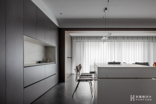 因通风良好,加上平时饮食习惯偏清淡,就算是宴请朋友聚餐,房子里也不会长久余留油烟的味道。在假日里的早晨,二人会在餐桌旁喝茶看书,随意聊天,工作日的疲劳就会消失不见。