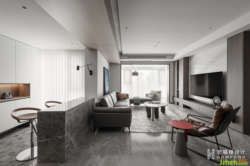 大理石吧台泼墨效果极具视觉冲击力,平添几分奢华气质。有时休闲,有时办公,为居者的空间使用延展出更多想象力。