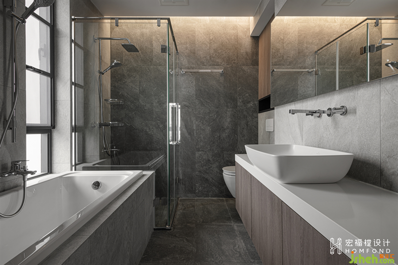原本局促的空间扩容后一分为四,精心布局切割干净利索的创造出自然简约的风范。不同材质的灰,化解统一的单调无聊,展现出空间的简约别致。