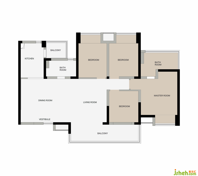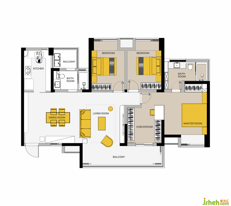 为满足保留三间卧室的生活需求,空间布局只将面积局促的厨房和无储物功能的主卧进行优化升级。考虑到空间为年轻情侣所居住,在设计动线上会更加关注人与人、人与空间所产生的关系。